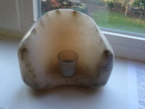 Witte albast op hardhouten sokkel (24h x 18b x 14d incl. sokkel) (2016) Staat te pronken bij mijn schoondochter